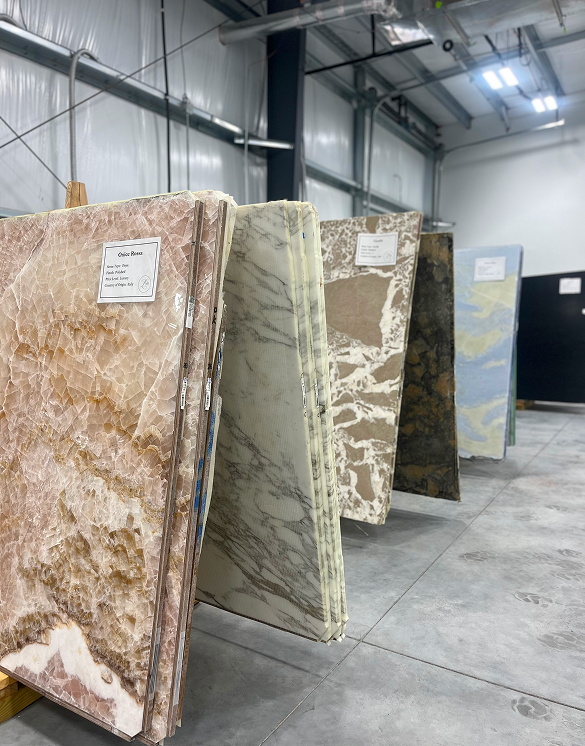 With our aim to offer more than just a warehouse experience, we’ve created a boutique space where stone selection becomes an inspiring, design-forward process. Unlike the vast, industrial feel of traditional warehouses, our 7,500-square-foot space is intentionally scaled and thoughtfully arranged, offering a refined edit of natural stone chosen for its beauty, quality, and connection to evolving design trends. The atmosphere has a gallery-like feel — calm, refined, and meant to spark creativity. Original works by local Lowcountry artists adorn the walls, adding a rich sense of place and artistic energy. Our team guides clients through an intimate, educational selection process in a welcoming environment designed to support and elevate every step of the design journey.
